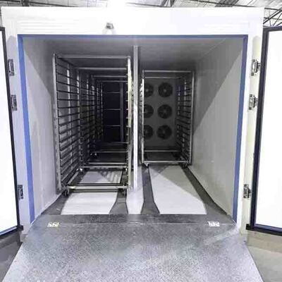 2. مهندسی شده برای خشک کردن یکنواخت: دارای یک سیستم گردش هوای با حجم بالا است که توسط مجموعهای از 6 فن سنگین که 3000-4500 متر مکعب در ساعت جریان هوای مداوم تولید میکنند، تغذیه میشود. کانالهای کف آیرودینامیکی هوای خشک را به طور مساوی در تمام 180 سینی به طور همزمان عبور میدهند و از کپک موضعی یا خشک شدن ناکافی جلوگیری میکنند.